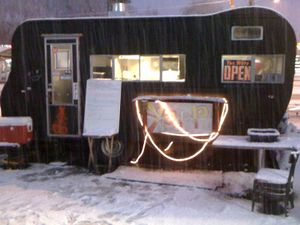 Yarp?! was a food cart that was among the first carts at Cartopia. A worker-owned collective started by two guys, it closed down in June 2010 when the two business partners decided to move on and go their separate ways. Their story was made into a play by Jeremy Benjamin; which featured the two main characters and a fictionalized story.[1] The play is not an accurate account of what really happened, but it represents a nice story to relate the spirit of Yarp?!. Reportedly, it was also much more than merely a food cart, just ask any of the frequent customers.