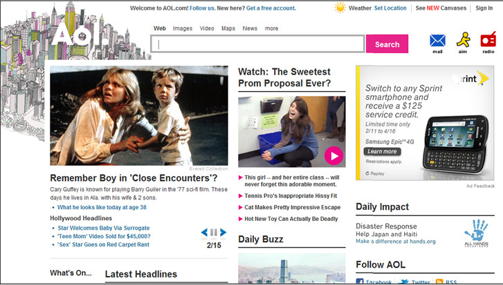 | 22:37, 6 April 2011 | Screenshot aol.jpg (file) | 115 KB | Screenshot of AOL home portal | 1 | |
